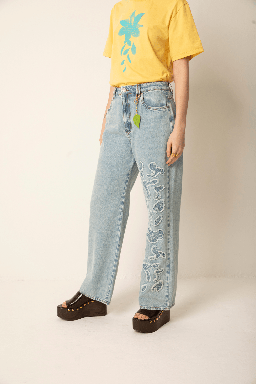 CALÇA C/ BORDADO PETALAS