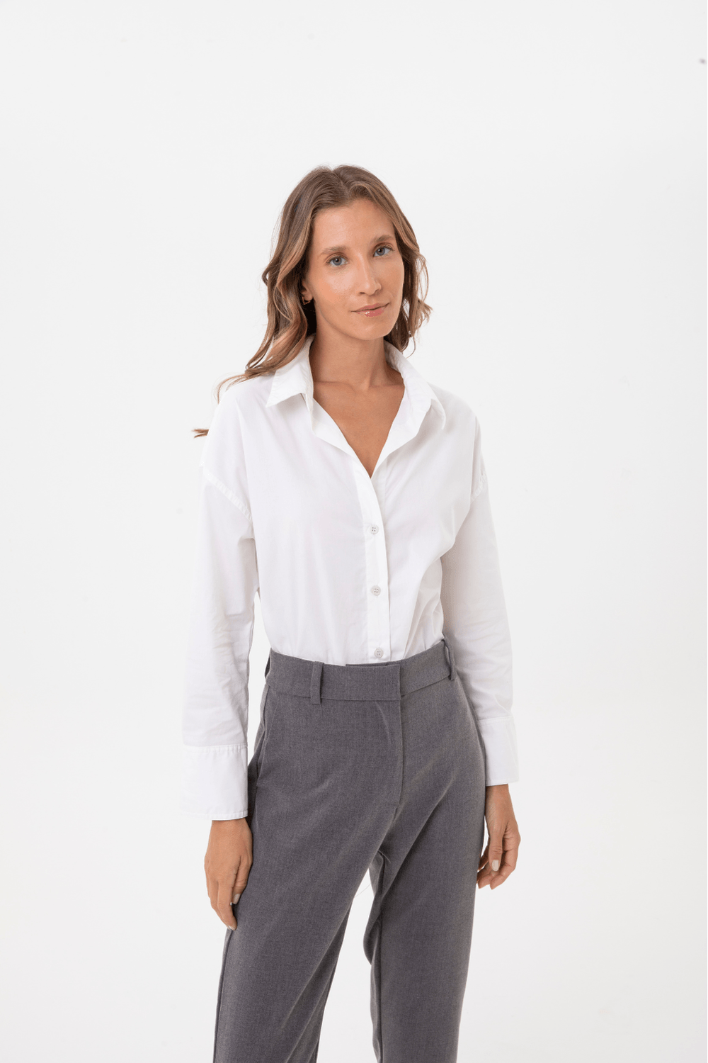 CAMISA VOIL MILA confeccionada em tecido leve e confortável, possui gola, abotoamento frontal e no punho por botões.