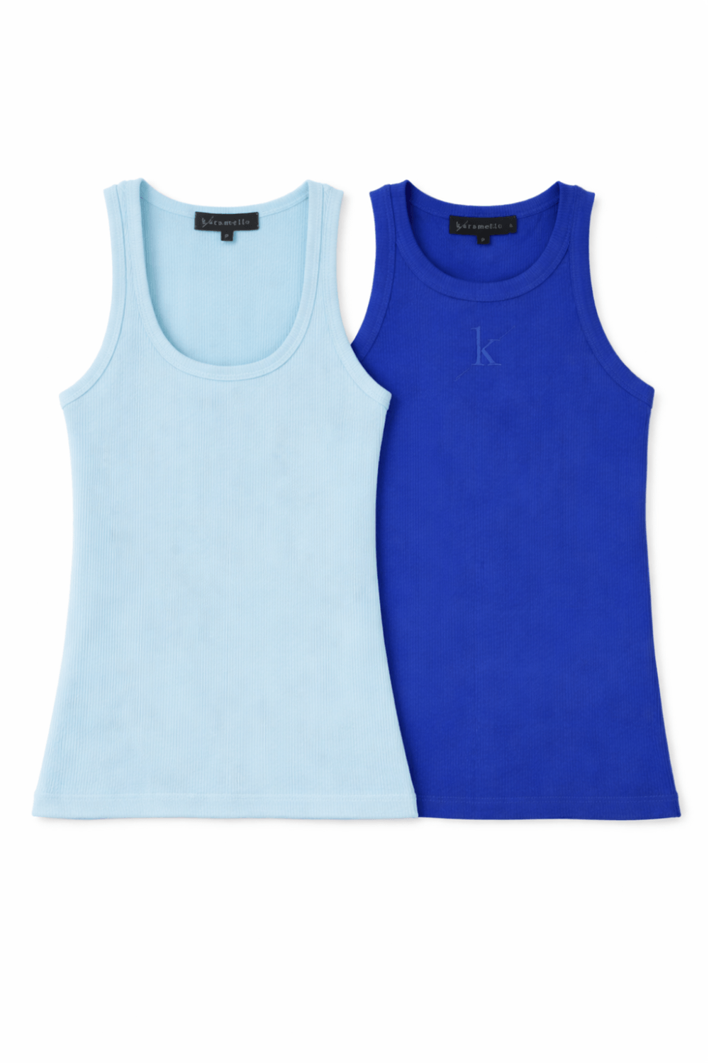 KIT REGATAS 2 PEÇAS feminina básica ribana canelada em viscose com elastano.