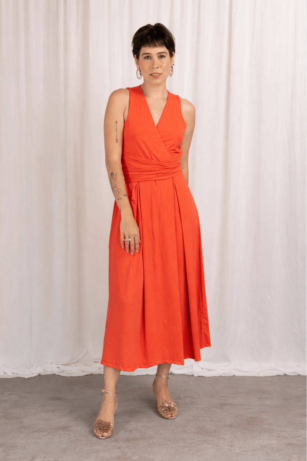VESTIDO LARE possui decote transpassado em V, que valoriza o colo de forma delicada, e faixa na cintura, que realça a silhueta com um caimento impecável. Zíper na lateral ,comprimento mídi.